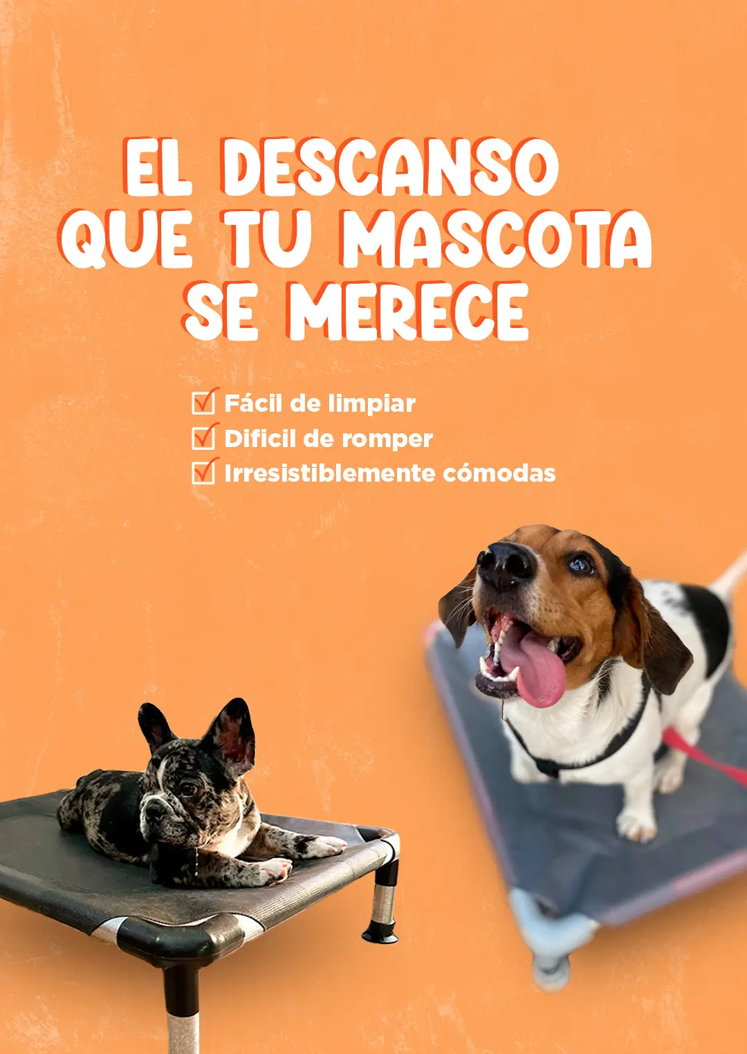 La cama está hecha con una lona de PVC anti-desgarre marca SEMBRA, la misma es antihongos y, al ser microperforada, no es absorbente y permite que se filtren los líquidos. Es de muy fácil lavado y no acumula olores, permitiendo que su mascota esté siempre limpia y seca